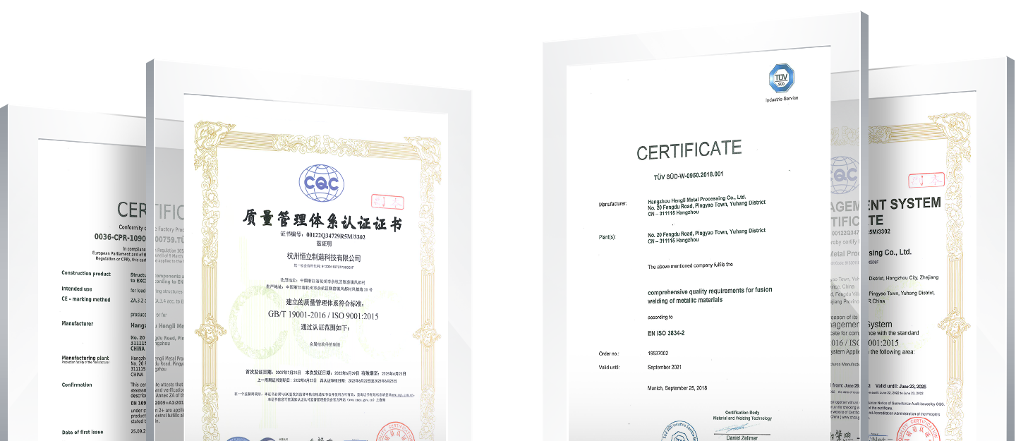 恒立制造榮獲多項質(zhì)量認證,包括ISO 3834國際焊接質(zhì)量體系認證;ISO 9001國際質(zhì)量管理體系認證;EN-1090-1認證
